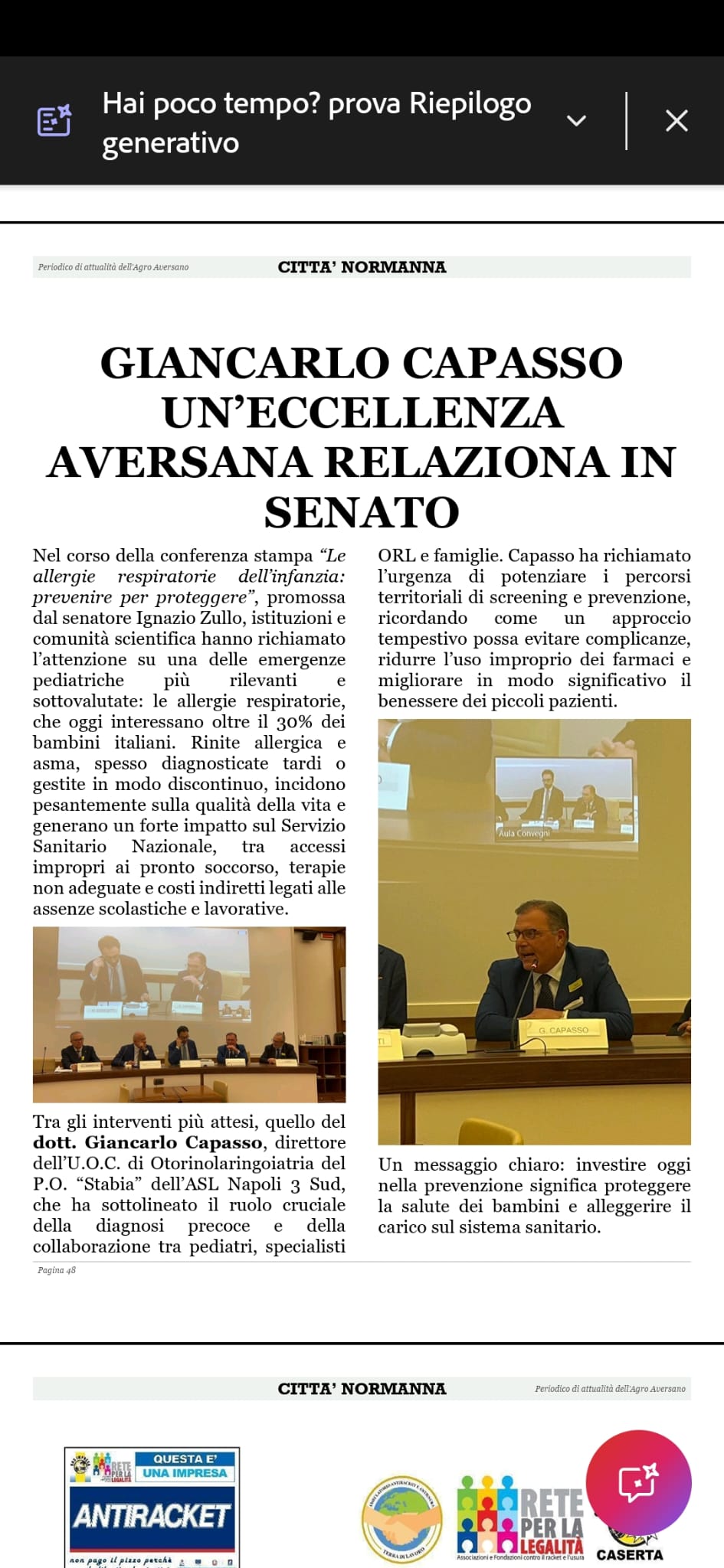 Giancarlo Capasso: un’eccellenza aversana relaziona in Senato
